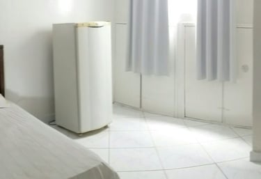 Ambiente familiar e seguro para sua estadia. Mobiliado com: ventilador de teto, cama, guarda-roupa, geladeira e tv.